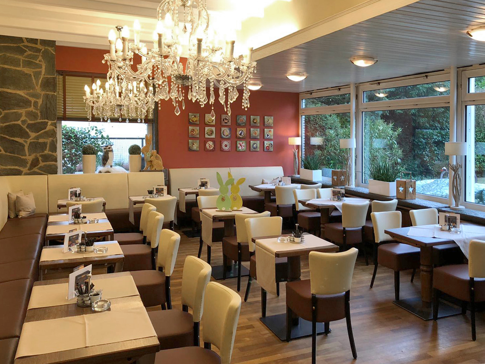 Sie können bei uns frühstücken, Kaffee und Kuchen genießen - aber auch herzhafte Kleinigkeiten essen. Wir haben auch an Feiertagen für Sie geöffnet - besonders beliebt sind übrigens unser Osterfrühstück und das Weihnachtsfrühstück.