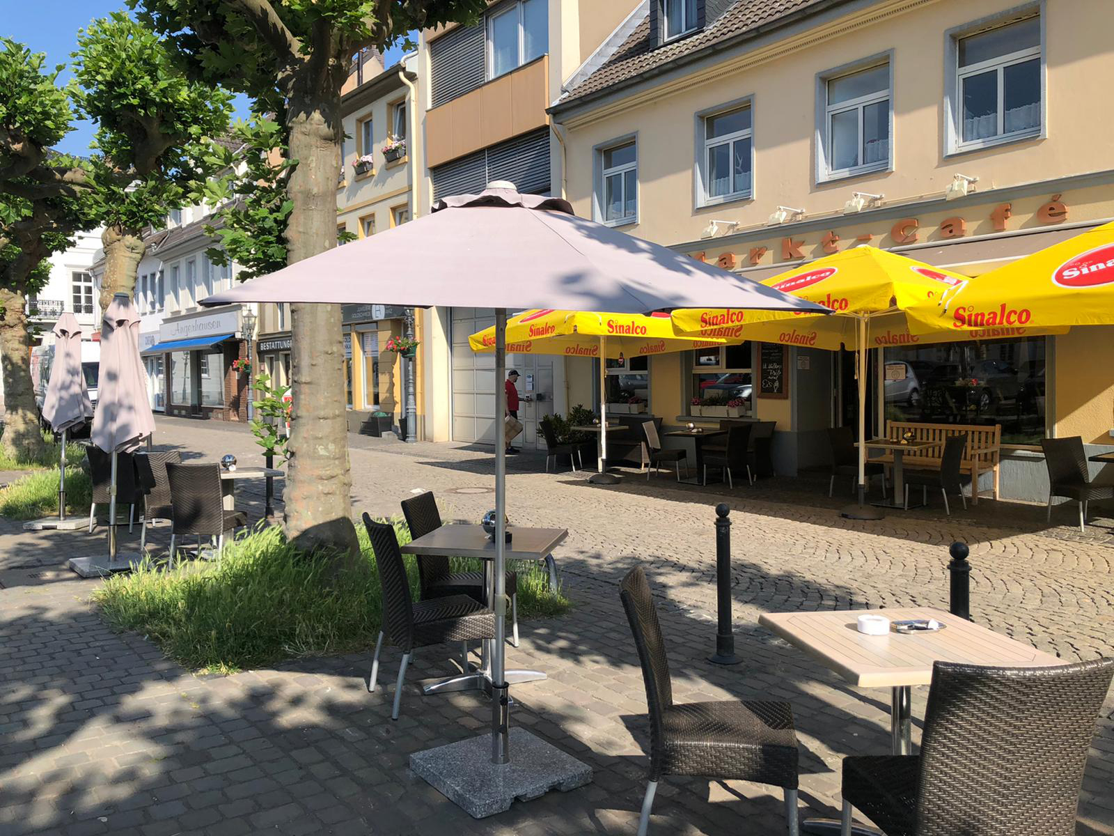 Das Markt Café liegt direkt am Uerdinger Marktplatz - auch hier kann man nicht nur entspannt innen sitzen, sondern bei schönem Wetter auch auf den Sitzplätzen vor dem Café das geschäftige Treiben rund um den Marktplatz beobachten.